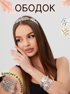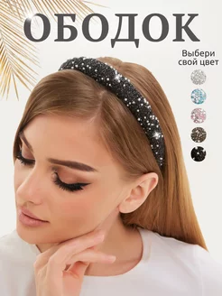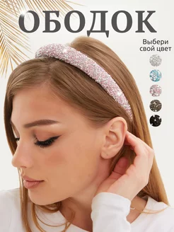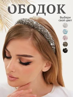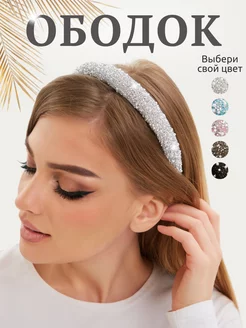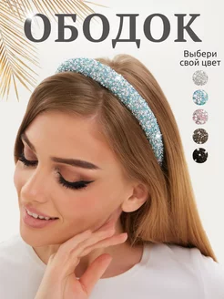 Ободок для волос блестящий со стразами и жемчугом объемный