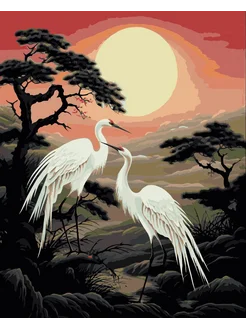 Картина по номерам Журавли и солнце закат 2471