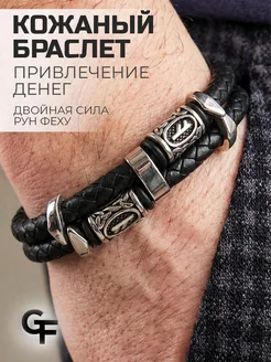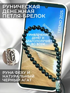 Брелок подвес для телефона с руной Феху и натуральным агатом