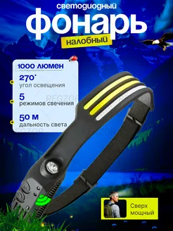 Фонарик налобный аккумуляторный кемпинговый