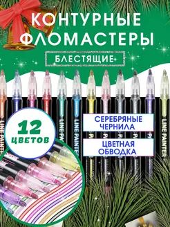 Фломастеры для рисования с блестками в наборе 12 шт