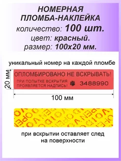 Пломба-наклейка номерная 100х20 мм (50шт) Красная
