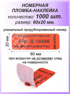 Пломба-наклейка номерная 60х20 мм (1000шт) Красная