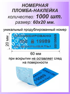 Пломба-наклейка номерная 60х20 мм (1000шт) Синяя