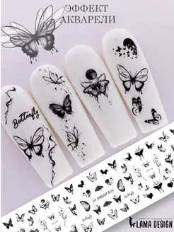 Слайдеры наклейки для ногтей черные бабочки акварель