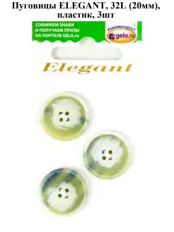 Пуговицы ELEGANT, 32L (20мм), пластик, 3шт, белый зеленый