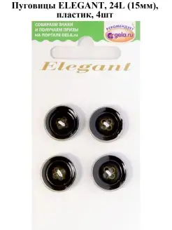 Пуговицы ELEGANT, 24L (15мм), пластик, 4шт, черный золотой