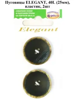 Пуговицы ELEGANT, 40L (25мм), пластик, 2шт, черный