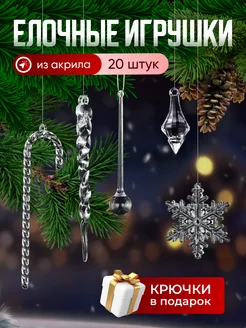 Набор елочных игрушек сосульки и снежинки прозрачные