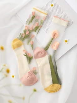 Носки красивые под лоферы с милыми цветами прозрачные капрон