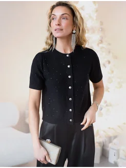 Укороченный нарядный джемпер на пуговицах с пайетками