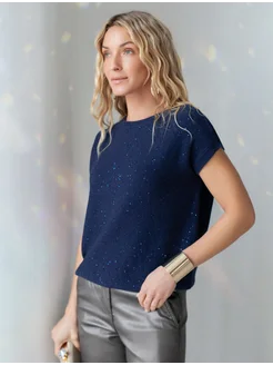 Нарядный джемпер с коротким рукавом из хлопка с пайетками