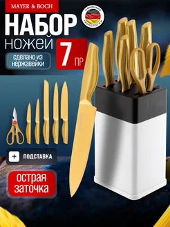 Набор кухонных ножей под золото с подставкой 7 предметов