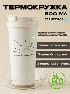 Термо кружка 500 мл для кофе и чая с трубочкой