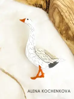 Брошь Гусь птица белый