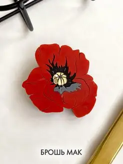 Брошь Мак цветок красный