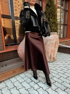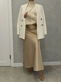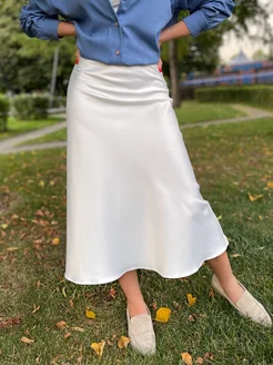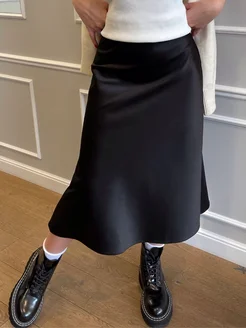 Юбка атласная шелковая трапеция тренд 2024-2025