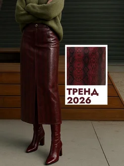 Кожаная юбка миди с разрезом длинная