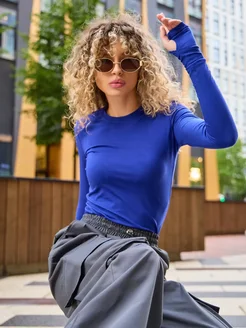 Лонгслив облегающий с длинным рукавом с вырезом для пальца