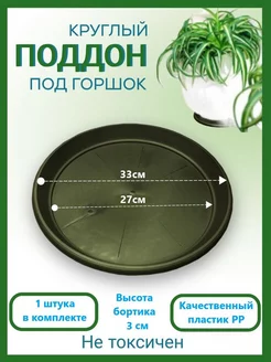 Поддон черный для горшка, диаметр 33см, набор 1шт