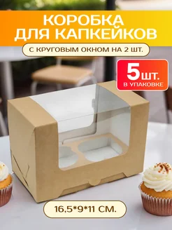 Коробки для капкейков на 2 шт. с прозрачным круговым окном