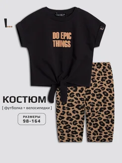 Леопардовый костюм для девочки футболка и велосипедки