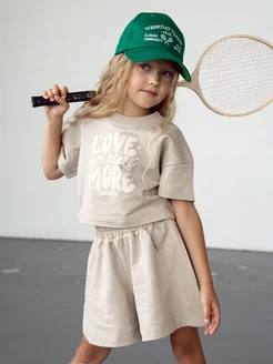 Костюм для девочки с шортами бежевый