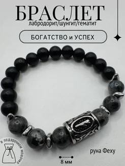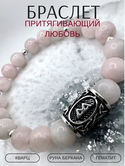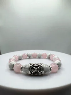 Браслет из натуральных камней кварц и кахолонг с руной Гебо