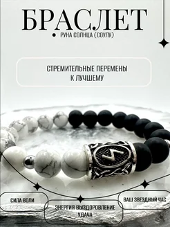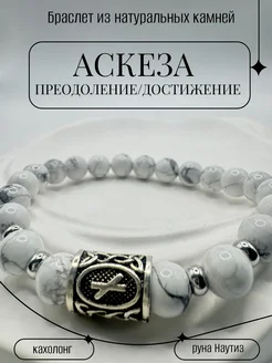 Браслет из натуральных камней кахолонг с руной Наутиз