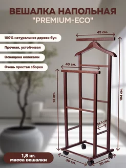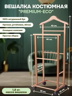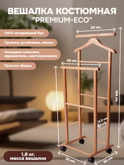 Вешалка костюмная для одежды деревянная на колесах "PREMIUM"