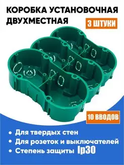 Коробка подрозетник 2-местная для полых стен 141х70х45