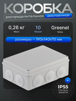 Коробка распаячная 190х140х70мм IP55, 10 входов