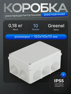 Коробка распаячная 150х110х70мм IP55, 10 входов