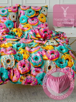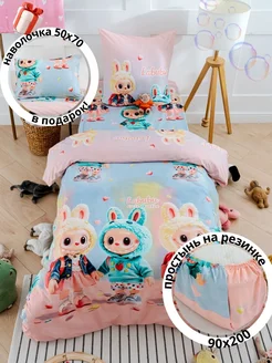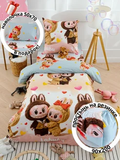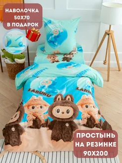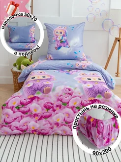 Постельное белье 1,5 спальное с простыней на резинке Лабубу