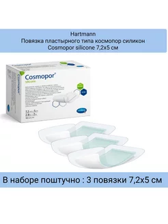 Повязка пластырного типа космопор силикон 7,2х5 см - 3шт