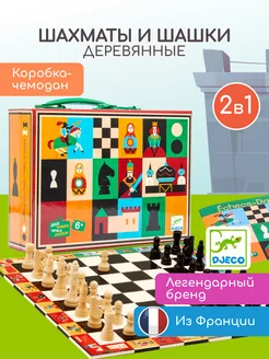 Деревянные шахматы и шашки Настольная игра 2 в 1