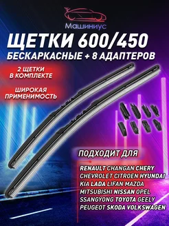 600-450 Бескаркасные щетки стеклоочистителя, 8 адаптеров