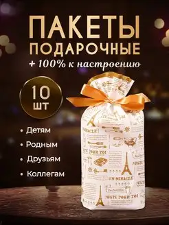 Подарочный пакет Париж на атласных завязках, набор 10 шт