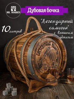 Дубовая бочка 10Л Вощеная "Легендарный самогон" В ОБЖИГЕ