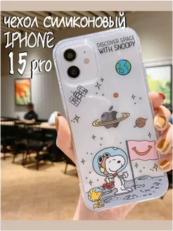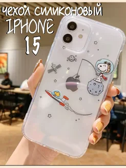 Силиконовый чехол для Iphone 15 прозрачный с принтом Snoopy