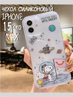 Силиконовый чехол для Iphone 15 pro max прозрачный с принтом