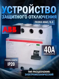 Оригинал УЗО FH204 40AC 0.3 mA 2CSF204003R3400 ABB