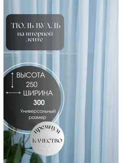 Тюль вуаль однотонная 300х250 см в гостиную спальню на кухню