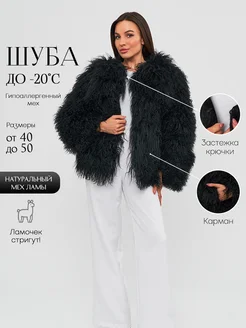 Шуба натуральная из ламы черная автоледи