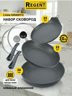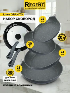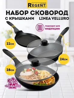 Набор сковородок 20, 24, 28 см с крышкой и блинница 22 см