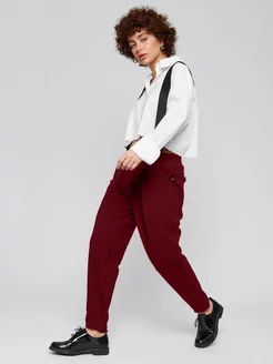 Брюки свободные зауженные к низу трикотажные с манжетами