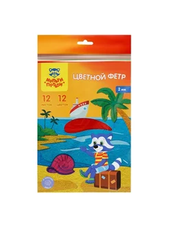 Фетр А4, 12 листов, 12 цветов, 2 мм, "Приключения Енота"