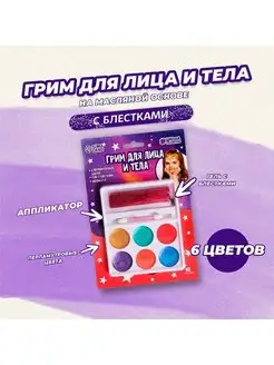 Грим детский 6 перламутровых цветов + гель с блёстками