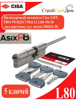 Цилиндровый механизм. ASIX P8-L80=50-30 (дл. шток)
