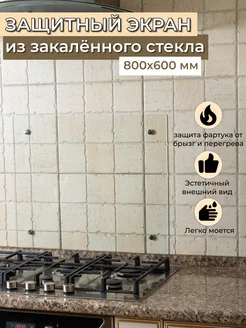 Защитный экран для кухни из закаленного стекла 800*600*4 мм